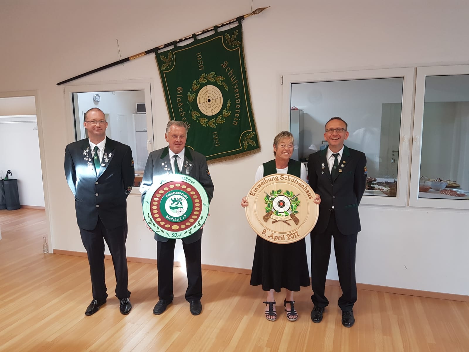 Natürlich wurden im Laufe des späten Vormittags auch wieder unsere Jubiläumsehrenscheibe und die Einweihungsscheibe der neuen Halle von 2017 am KK-Stand ausgeschossen.